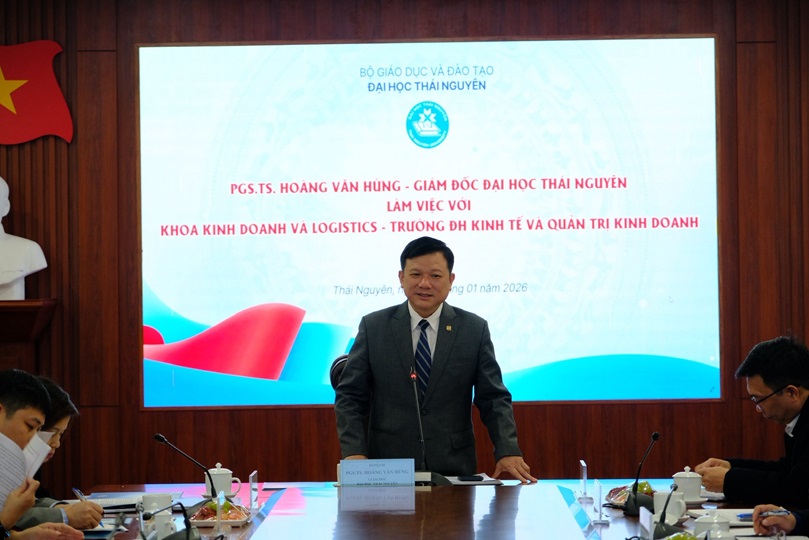 Chiều 21/1, PGS.TS. Hoàng Văn Hùng, Phó Bí thư Đảng ủy, Giám đốc Đại học Thái Nguyên đã chủ trì buổi làm việc với Khoa Kinh doanh và Logistics, Trường Đại học Kinh tế và Quản trị Kinh doanh, Đại học Thái Nguyên.